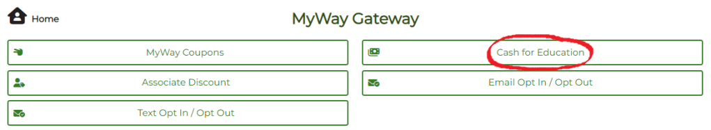 6. You are all set! You will begin to earn 5% back for PR on all of your MyWay purchases for the rest of the year! Be sure to renew your Cash for Education selections every year on January 1!